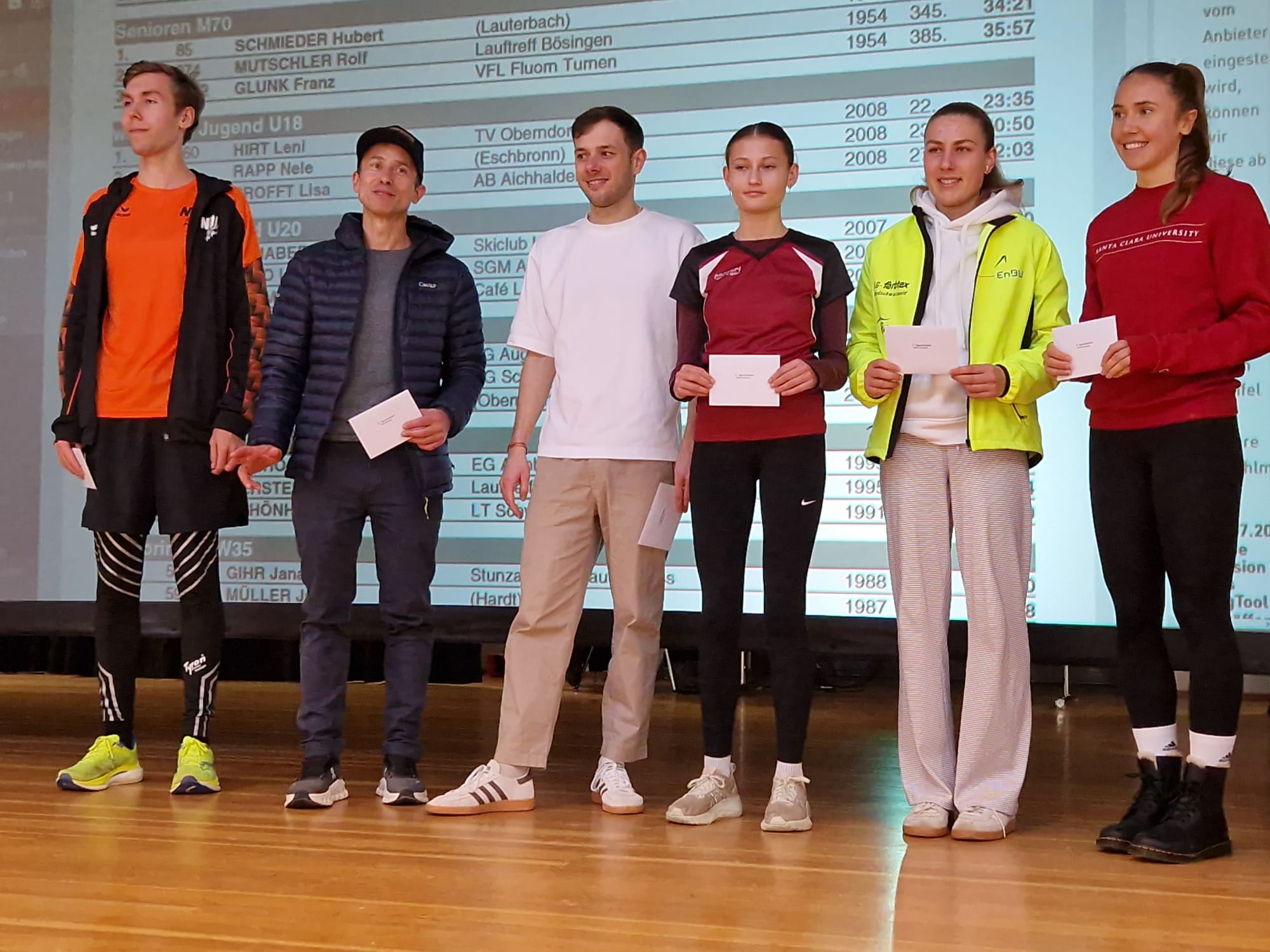 Am 31.12 kamen mehr als 500 Läuferinnen und Läufer zum 51. Silvesterlauf in Fluorn zusammen, um das Wettkampfjahr 2025 ausklingen zu lassen. Nele Schaber drückte aufs Tempo und siegte in der Frauenklasse und in der Klasse U20. Sie bewältigte die 6,4km in einer tollen Zeit von 23:40min. Lukas Waidelich belegte den 2. Platz in 22:13min und Uli Stein den 4. Platz in 26:39min, diese 3 holten sich mit der Mannschaft den 3. Platz. Die Schüler liefen 1,4km. Hier holte sich Lukas Schrempp in 6:02min den 2.Platz, gefolgt von Daniel Armbruster 6:10min und Peter Glodowski 6:14min. Johanna Braun lief auf Platz 4 in 7:02min, gefolgt von Joline Liebgott Platz 5 in 7:05min. Vanessa Albrecht erreichte den 5. Platz in 8:59min. Unsere Jüngste, Aurelia Braun (6Jahre) bewältigte die Strecke in 8:45min bei den 8 jährigen auf Platz 20. Mannschaft 1 mit Lukas, Daniel und Johanna erreichte den 3. Platz und Mannschaft 2 mit Peter, Joline und Aurelia den 8.Platz.