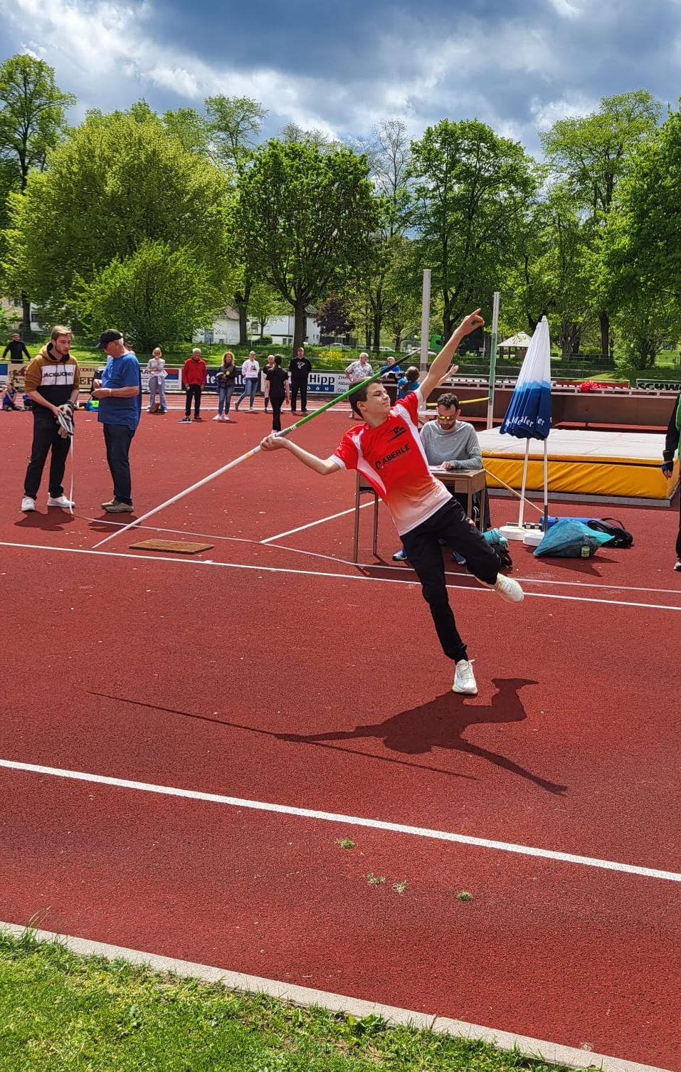 Auch ohne Trainer gingen beim Leichtathletikmeeting in Oberkirch zwei Athleten an den Start die beide einen rundum gelungenen Tag erwischten. Selina startete in der Altersklasse W13 und überzeugte gleich in drei Disziplinen. Nicht nur im 75m Sprint war sie stark. Dort lief sie in 11,14sek nicht nur auf einen tollen 2. Platz, sondern stellte damit auch eine neue Bestleistung auf. Im Weitsprung wiederholte sie diesen Erfolg und sicherte sich mit 4,29m ebenfalls Rang 2, sowie eine weitere PB. Im Speerwurf belegte sie mit 14,50m den 4. Platz. Lars trat in der M13 an und lieferte einen herausragenden Wettkampf ab. Nicht nur über die 60m Hürden war er stark. Dort stürmte er in neuer PB von 11,3sek auf Platz 1. Auch im Weitsprung überzeugte er mit 4,41m und Rang 3. Mit dem Speer erzielte er 20,00m und wurde 4. Zum krönenden Abschluss dominierte er den 800m Lauf und lief mit einer überragenden Bestzeit von 2:36min als Erster ins Ziel.